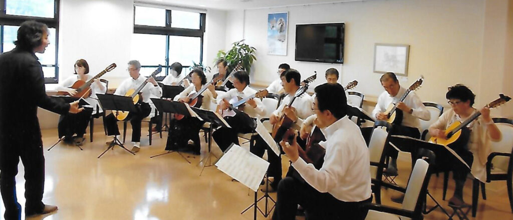 ベテランの方、初心者の方問わず、みんなでギターを合奏しています。